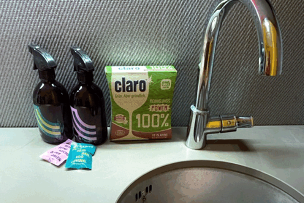 Wir verwenden ausschließlich mikroplastikfreie Reinigungsmittel, um Grundwasser und Umwelt zu schützen. Die Geschirrspülmaschine wird nur in vollem Zustand betrieben und nur mit klimafreundlichen Reinigungs-Tabs.